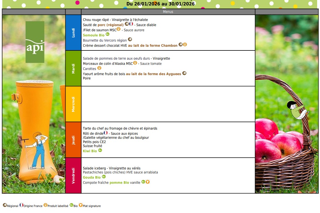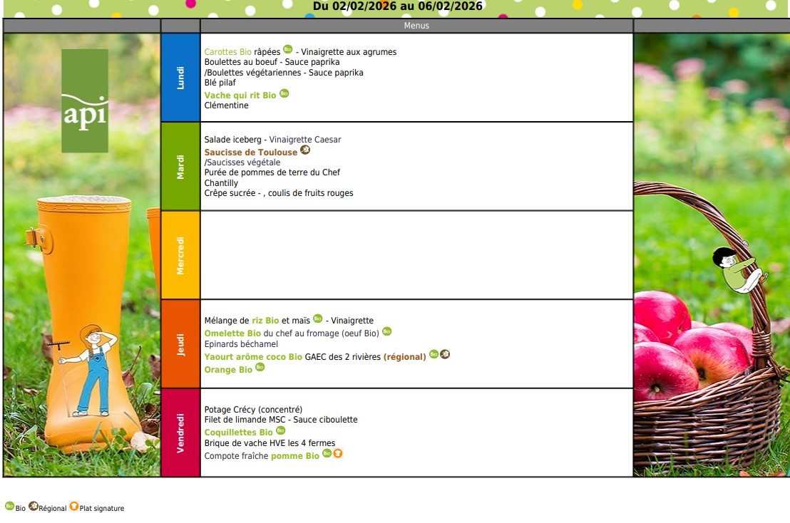 Des menus équilibrés et variés, qui font la part belle aux produits locaux et/ou régionaux.