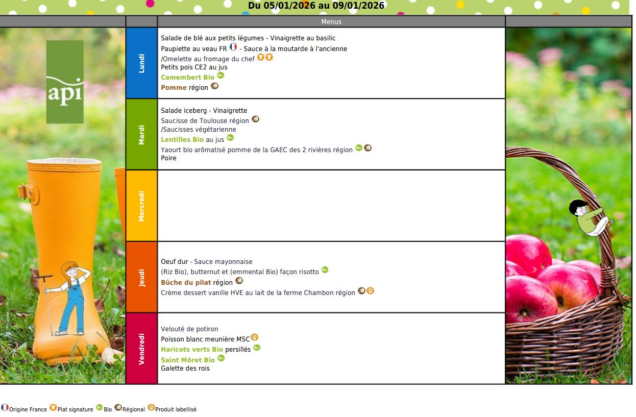 Des menus équilibrés et variés, qui font la part belle aux produits locaux et/ou régionaux.